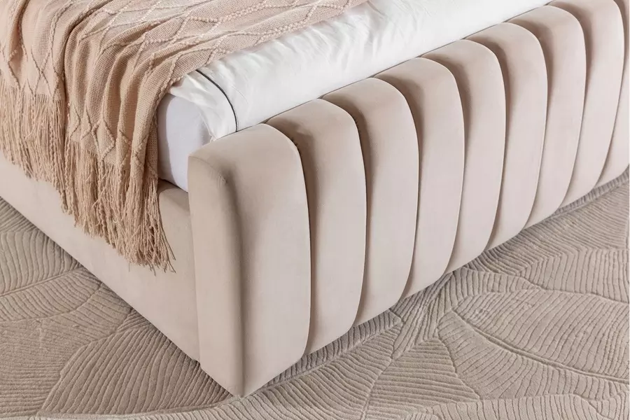 Тапицирано е с висококачествено матово кадифе, което е изключително меко и приятно на допир, придавайки усещане за уют и лукс. Леглото се предлага в широка гама от цветове и текстили, като при избор на различен текстил е възможна промяна в цената.