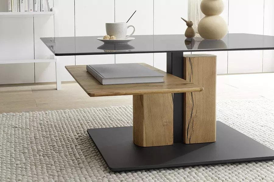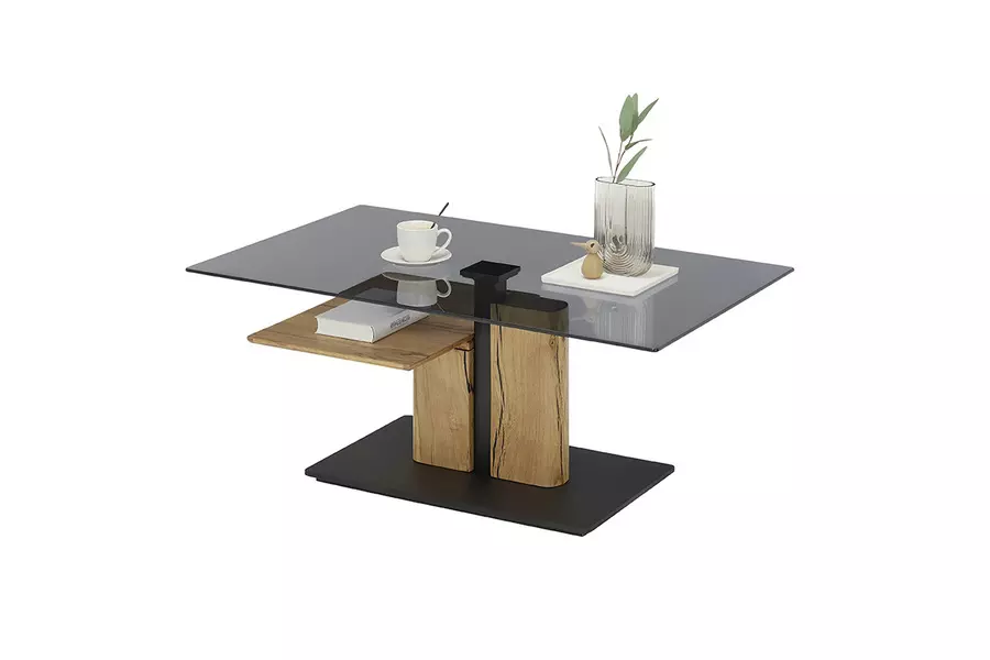 Холната маса ДЕЛМАС с повдигащ механизъм е стилно и практично допълнение за всяко модерно жилище, комбинирайки иновативност и елегантен дизайн. Плотът от опушено закалено стъкло създава изискана атмосфера, придавайки усещане за лукс и лекота в помещението. Рамката на масата е изработена от омаслена дъбова дървесина, известна със своята здравина и устойчивост, допълваща естествената красота на интериора ви.