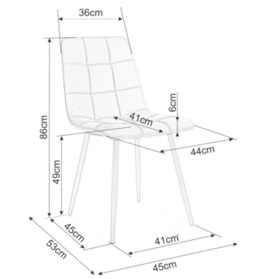 Размерите на трапезен стол Мила D са ширина 45 см, височина 86 см и дълбочина 41 см, което го прави подходящ за различни по големина пространства и позволява лесно разполагане около трапезна маса. Моделът е функционален, удобен и устойчив, създаден да отговори на изискванията за комфорт и надеждност в дома.
