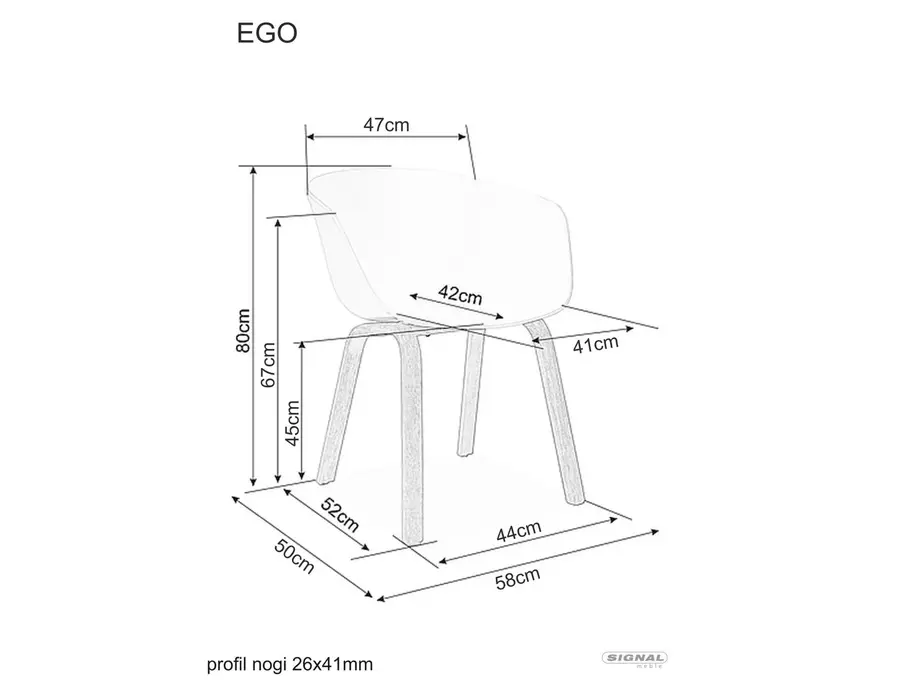 Трапезен стол ЕГО съчетава модерен дизайн и практичност, за да предложи удобно и стилно решение за всяка трапезария. Седалката е изработена от висококачествена пластмаса, която осигурява комфорт при продължително седене и лесна поддръжка. Повърхността е гладка и приятна на допир, а формата ѝ е анатомично оформена, за да пасне естествено на тялото.