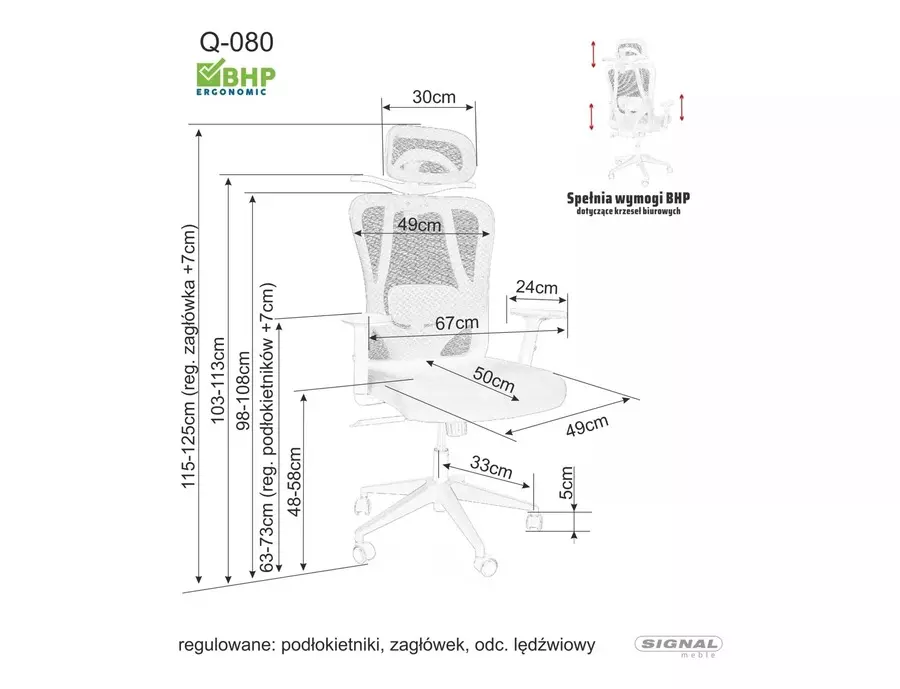 Офис кресло Q-080M е изработено от здрави и издръжливи материали, гарантиращи дълготрайна употреба и стабилност. Ергономично оформената седалка и облегалка предоставят правилна опора за гърба, а лумбалната зона е специално проектирана да намали напрежението при продължително седене. Облегалката е оборудвана с регулируема опора за глава, която осигурява допълнителен комфорт и предотвратява умората във врата.