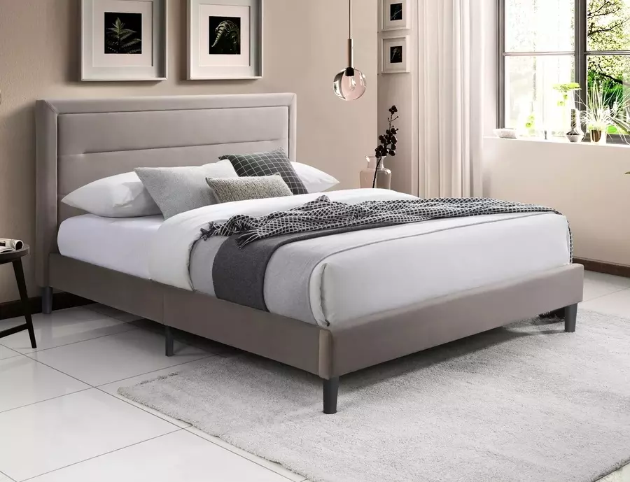 Цялата конструкция е тапицирана в мек и издръжлив текстил, приятен на допир и устойчив на ежедневно износване. Изчистените линии и неутралният дизайн позволяват лесно съчетаване с различни стилове на обзавеждане – от съвременен до класически. Включената в цената подматрачна рамка осигурява стабилна опора за матрака и допринася за дълготраен комфорт при употреба. Леглото не разполага с механизъм за повдигане, което го прави особено подходящо за интериори, в които пространството за съхранение не е приоритет.