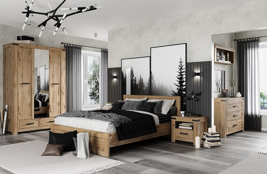 Нощно шкафче МОРТИЗ е част от стилната колекция МОРТИЗ, позволявайки лесно комбиниране с други мебели от същата серия за постигане на хармонична и цялостна визия в спалнята.