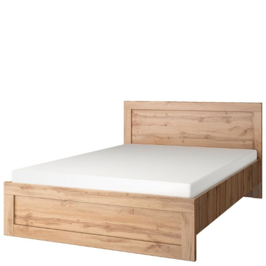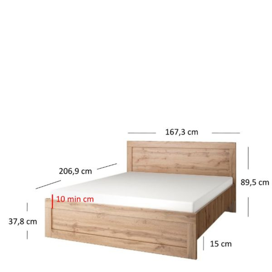 Леглото е предназначено за двулицев матрак с размер 160х200см., което го прави идеален избор за двойки или за просторни спални помещения. В комплекта е включена здрава ламелна рамка, която осигурява стабилна основа и допринася за по-добро разпределение на тежестта и по-високо ниво на комфорт по време на сън.