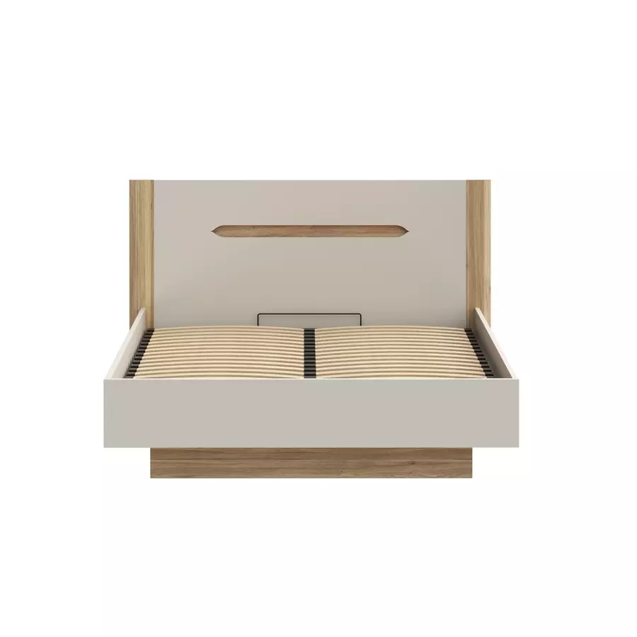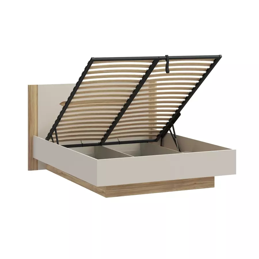 Моделът е предназначен за двулицев матрак с размер 160х200 см, като гарантира стабилност и комфорт по време на сън. В комплекта са включени рамка и повдигащ механизъм, които осигуряват удобен достъп до подматрачното пространство. Това място е практично за съхранение на завивки, спално бельо или други вещи, което прави леглото още по-функционално.