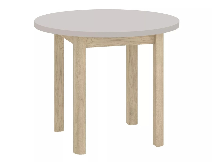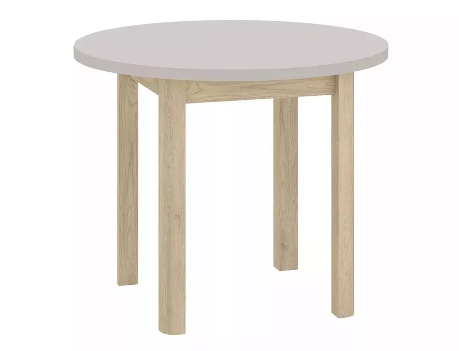 Трапезна маса АДАМ съчетава елегантен дизайн с практична конструкция, подходяща за съвременни интериори. Кръглата форма на плота с диаметър 80 см създава усещане за уют и близост, като предоставя достатъчно място за комфортно настаняване на четирима души. Плотът е изработен от качествен МДФ, който се отличава с гладка повърхност, стабилност и лесна поддръжка, а основата е от ПДЧ.