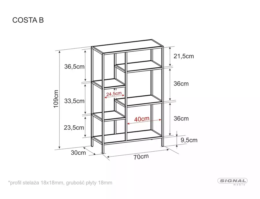 Етажерка КОСТА В е отличен избор за всекидневна, кабинет, спалня или офис, където е необходима мебел, съчетаваща практичност и естетика.