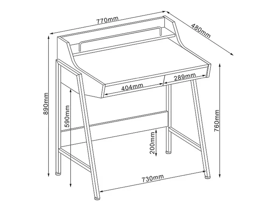 Бюро B-168 е стилно и практично решение за съвременния дом или офис, съчетаващо модерна визия и удобство при работа. Конструкцията му е изградена от метални крака, които осигуряват стабилност и издръжливост във времето. Плотът и чекмеджетата са изработени от висококачествен МДФ, който гарантира дълготрайност, лесна поддръжка и елегантен външен вид.