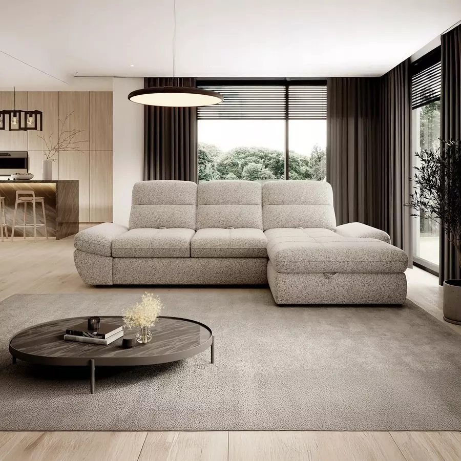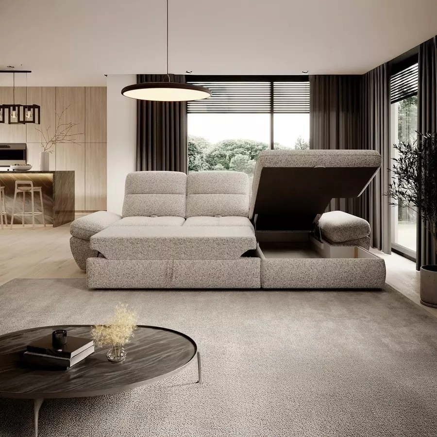 Ъглов диван ГАЛИАНО S предлага просторно място за сън с размери 180x217 см, което го прави изключително практичен избор и за гости, и за ежедневно използване. Под лежанката се намира голяма ракла за съхранение, осигуряваща допълнително пространство за одеяла, възглавници или други вещи.