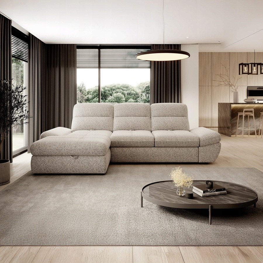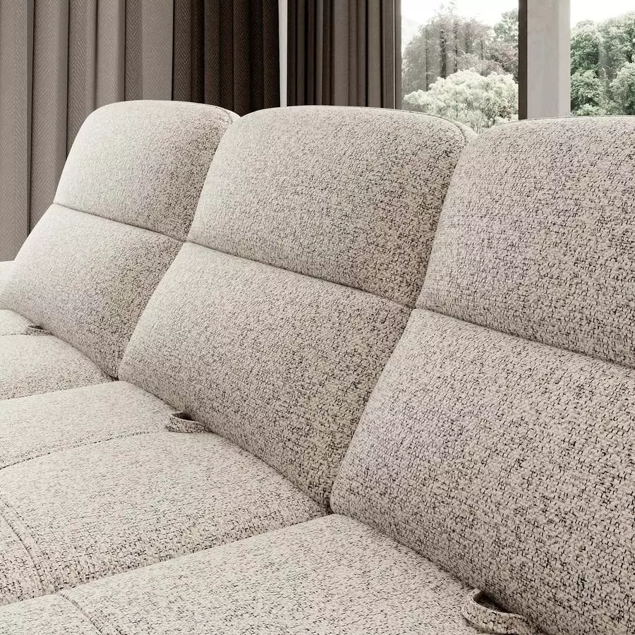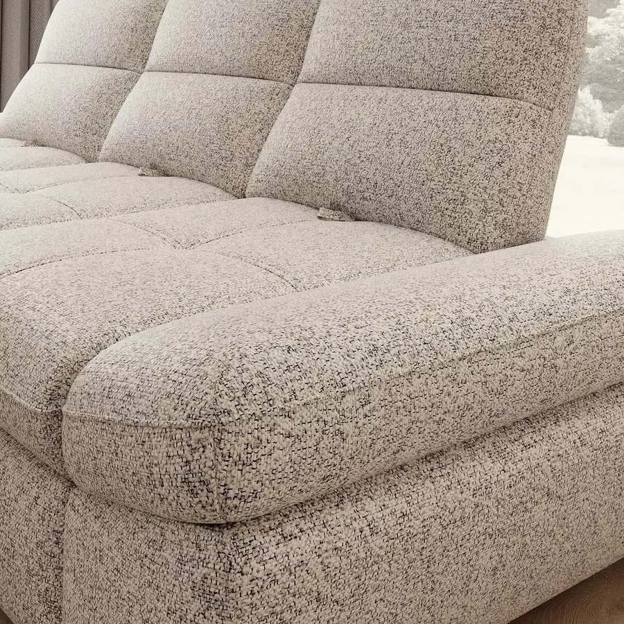 Седалките са изработени с пълнеж от високоеластична пяна, в комбинация със зиг-заг пружини, което гарантира устойчивост, мекота и дълготрайна форма при интензивна употреба. Ъглов диван ГАЛИАНО S се предлага в широка гама от цветове и различни видове текстил, за да бъде лесно съчетан с всякакъв интериорен стил.