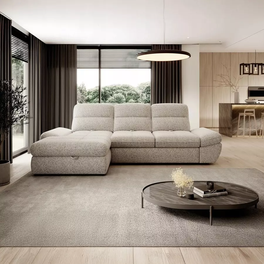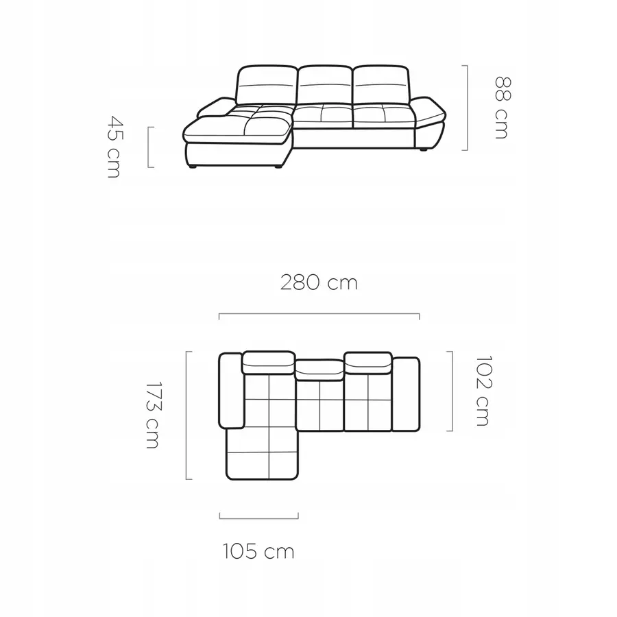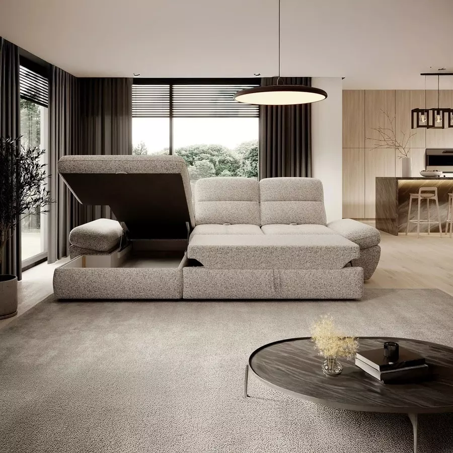 Ъглов диван ГАЛИАНО S предлага просторно място за сън с размери 180x217 см, което го прави изключително практичен избор и за гости, и за ежедневно използване. Под лежанката се намира голяма ракла за съхранение, осигуряваща допълнително пространство за одеяла, възглавници или други вещи.