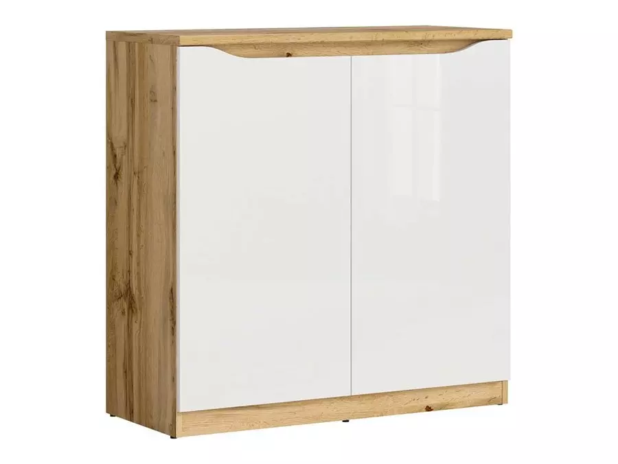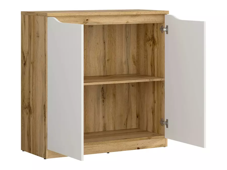 Шкаф НУИС KOM2D разполага с удобна вратичка и два просторни чекмеджета, които позволяват лесна организация на вещи, документи или аксесоари. Благодарение на изчистените си линии и съвременния дизайн, моделът се вписва идеално както в дневна, така и в спалня или офис пространство. Повърхността е лесна за поддръжка и запазва естетичния си вид дълго време.