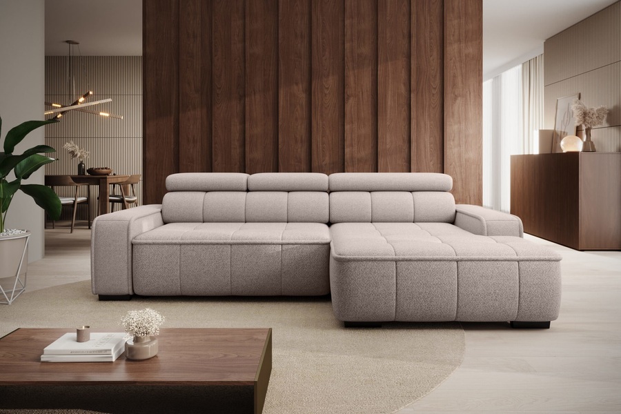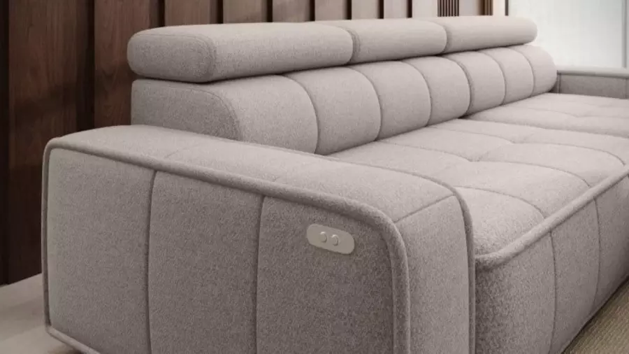 Ъглов диван ТИАГО S съчетава модерна визия, иновативни функции и безкомпромисен комфорт. Отличава се с електрическа функция за регулиране на дълбочината на седалката, която позволява увеличаване с до 27 см, осигурявайки персонализирана настройка според индивидуалните предпочитания. Тази функция го превръща в изключително удобна зона за отдих през деня и функционално място за спане при необходимост.