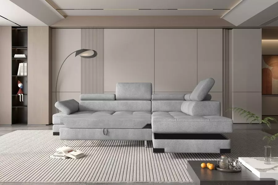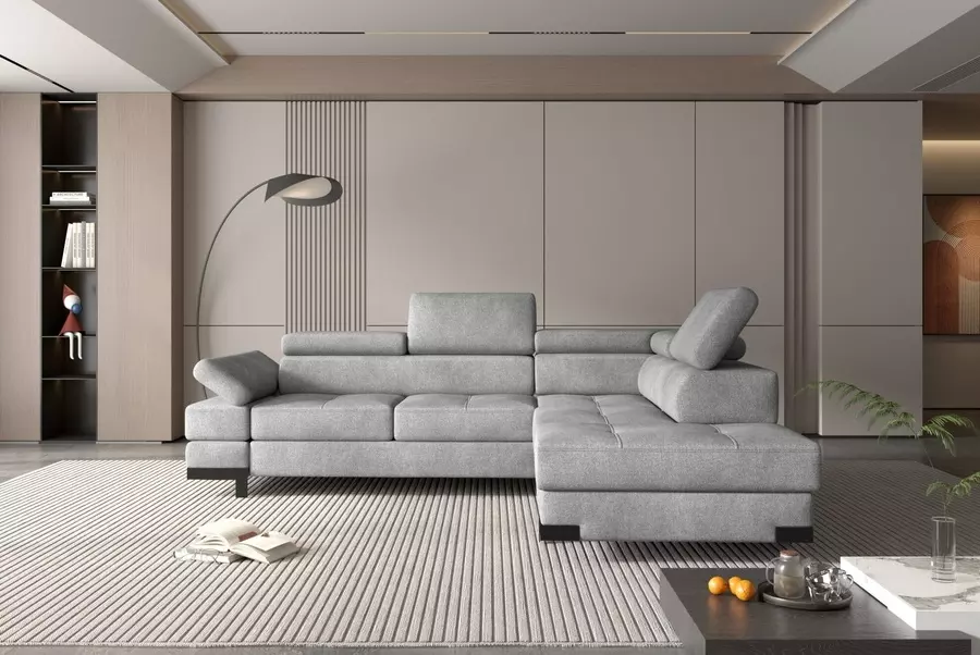 Ъглов диван ЕМПОРИО L е стилно и практично допълнение към всеки модерен интериор, съчетаващ изчистена визия с висока функционалност. Моделът е изработен от масивна конструкция, осигуряваща стабилност и дълготрайност, което го прави надежден избор за дългосрочно ползване.