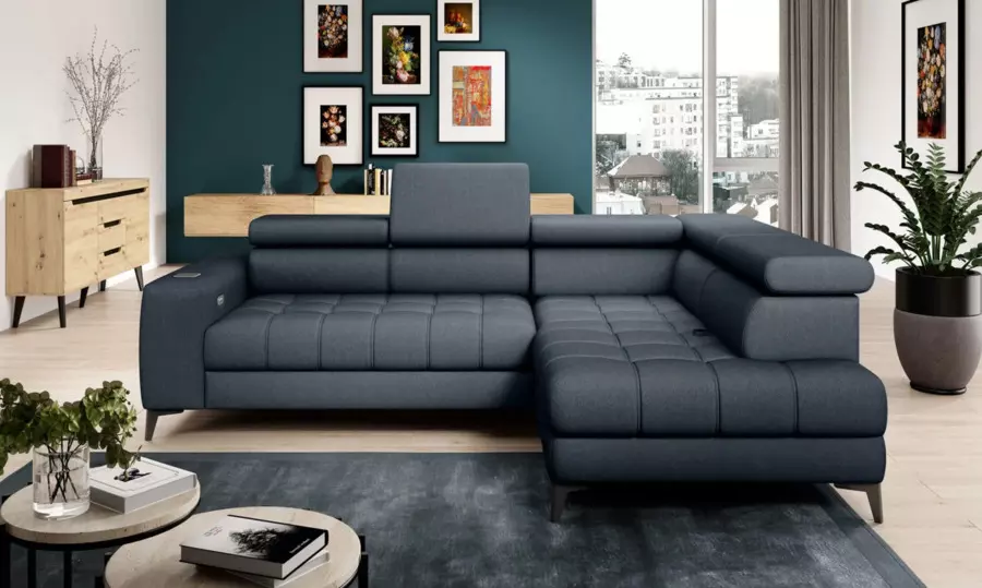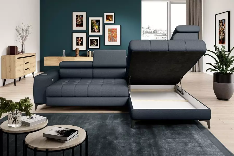 Допълнителна иновация в модела е вграденото безжично зарядно за бързо зареждане на устройства – практично решение, което допълва удобството в ежедневието. Ъглов диван БАГИО L може да бъде поръчан в богато разнообразие от текстили и цветове, което позволява лесно съчетание с всеки интериор.