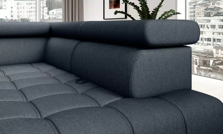 Ъглов диван БАГИО L впечатлява с модерен дизайн и интелигентни функционалности, които го превръщат в перфектния избор за динамичния съвременен дом. Със своя компактен размер, моделът е подходящ дори за по-ограничени пространства, като същевременно не прави компромис с удобството и стилната си визия.
