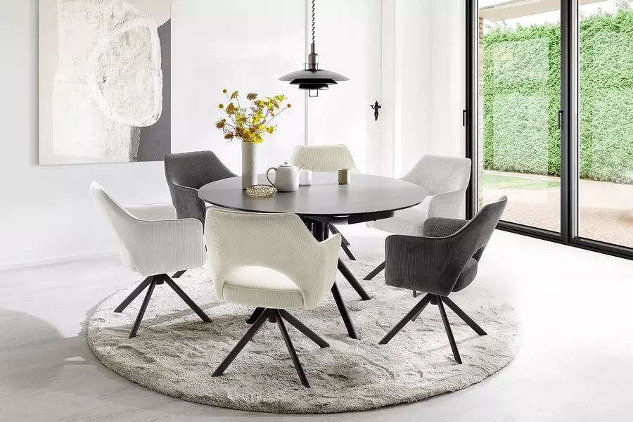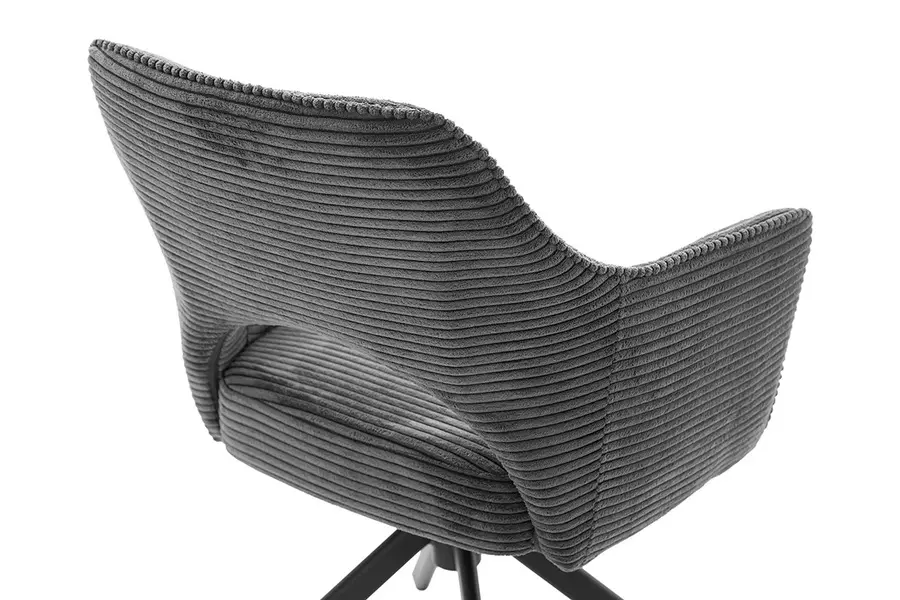 Металната основа в черен мат осигурява стабилност и изискан контраст с тапицерията. Благодарение на възможността за 360° завъртане, креслото предоставя пълна свобода на движение и удобство при използване, независимо дали е разположено в офис, хол или зона за отдих. Конструкцията му е проектирана да издържа натоварване до 120 кг, което го прави подходящо за ежедневна употреба и отговаря на високите стандарти за надеждност и устойчивост.