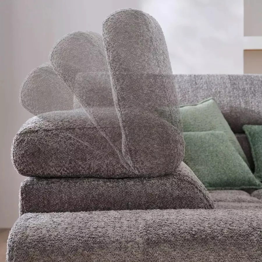 Диванът разполага с подглавници с 5 степени за регулиране, които осигуряват максимално удобство при различни позиции на тялото. Вграден електрически механизъм позволява плавно регулиране на дълбочината на седалката до 26 см., което осигурява повече пространство за почивка. Тази функционалност позволява ъглов диван ПЛАЗА L да се използва и като удобно място за сън при необходимост, без нужда от допълнителни механизми за разтягане.