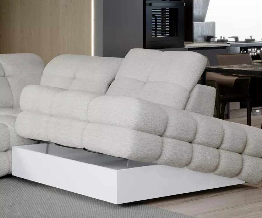 Ъглов диван ТОЛЛО във вариант XL с функция сън, ракла и регулируеми облегалки за глава. Електрически разтегателна седалка до 60 см и ръчно регулируема дълбочина на облегалката на лежанката за индивидуално адаптиране.