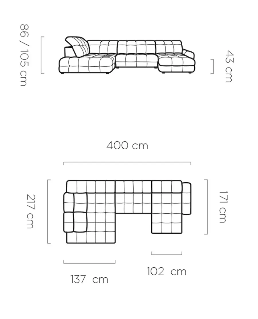 - Лежанка 1: ширина 137 см / дълбочина 167 см