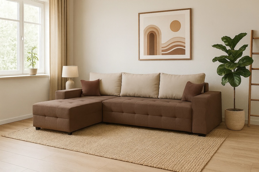 Холов ъгъл Корнер с функция сън и място за съхранение под терминала. Размер на площта за спане:145х248 см. Височина на седалищната част:44 см.
