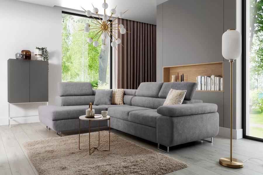 Холов ъгъл АНАБЕЛ L е съвременно решение за всеки хол, съчетаващо стил, удобство и функционалност. Той впечатлява с изчистен и елегантен дизайн, който лесно се вписва във всеки интериор. Изработен е от висококачествена тапицерия от водоотблъскващ материал тип велур, отличаващ се с издръжливост, мекота и лесна поддръжка. Страната на лежанката е лява, което го прави подходящ за разполагане в различни типове помещения според нуждите на домакинството.