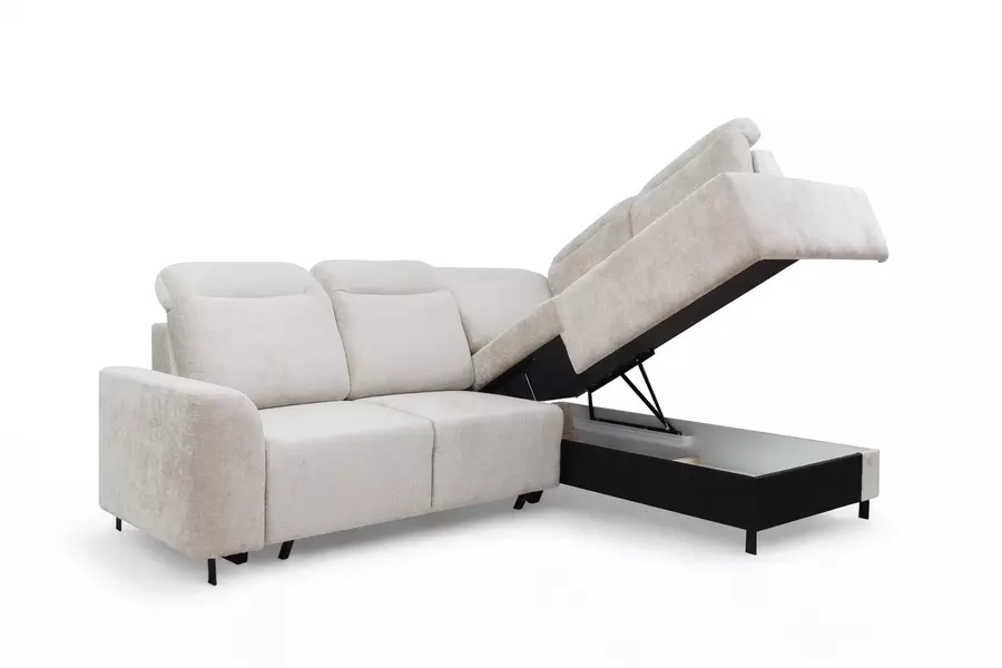 Допълнителното място за съхранение под седалката предоставя практично решение за подреждане на завивки, възглавници и други вещи, запазвайки реда във всекидневната. Още едно предимство са регулируемите облегалки, които позволяват персонализиране на удобството според индивидуалните предпочитания.