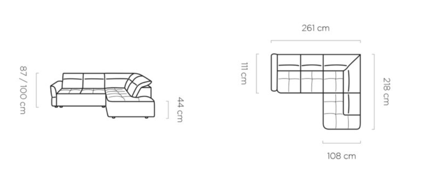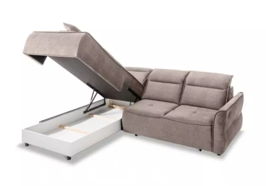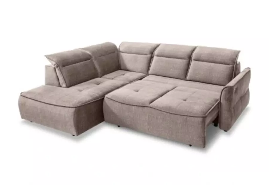 Ъглов диван МУРИЛЛО L е съвременно решение за всеки дом, който търси компактност, функционалност и стил в едно. Моделът съчетава изтънчена визия с практични предимства, които го правят идеален както за ежедневна употреба, така и за моменти на почивка. Оборудван е с електрически механизъм, който позволява лесно регулиране на дълбочината на седалката и трансформация във функция сън. В максимално изтеглено положение размерът на спалната площ достига 115х195 см – напълно достатъчен за комфортен сън.