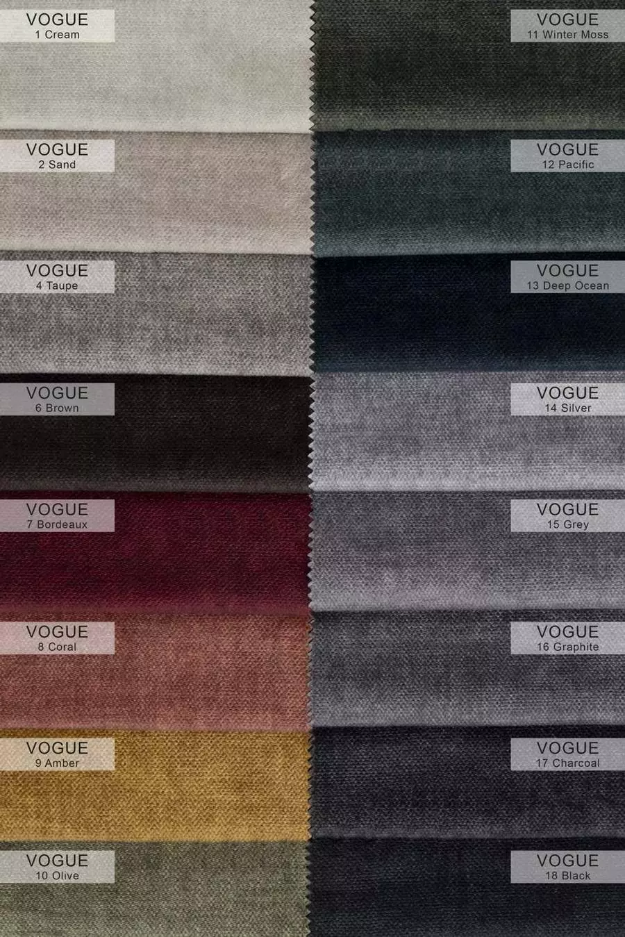 Моделът се предлага с по-малка лежанка в дължината ѝ, както и като П-образен вариант за още повече пространство и удобство. Наличен е в богато разнообразие от цветове и текстили, което позволява индивидуално адаптиране спрямо вкуса и интериора.