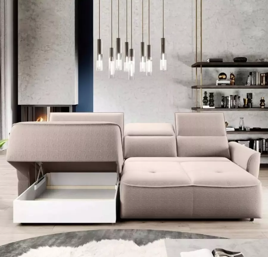 Ъглов диван МУРИЛЛО S разполага с голяма ракла, разположена под лежанката, осигуряваща допълнително място за съхранение на всякакви вещи. Седалката е проектирана с внимание към комфорта – балансирана като твърдост, без да е прекалено мека или твърда. Пълнежът е от високоеластична пяна, комбинирана със зиг-заг пружини, което гарантира издръжливост и удобство дори при дълготрайна употреба.