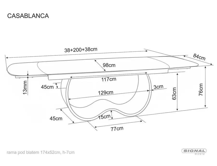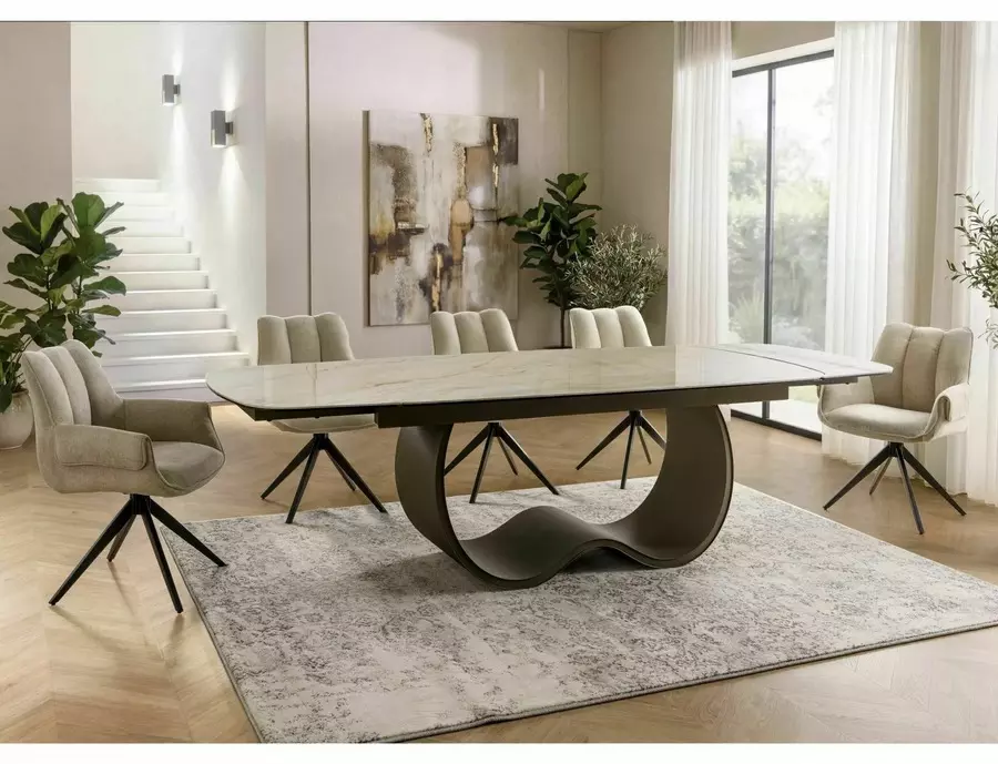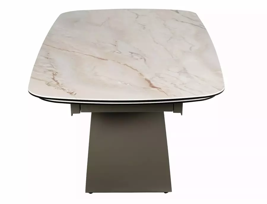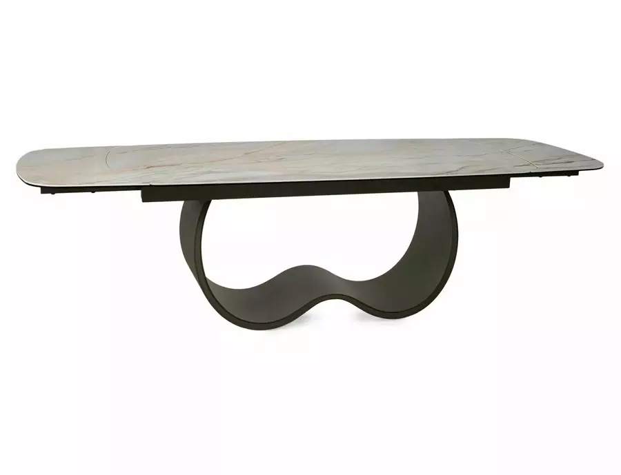 Трапезна маса КАЗАБЛАНКА КЕРАМИК разполага с удобен механизъм за разгъване, който позволява бързо и лесно увеличаване на площта на плота. В прибрано състояние масата е подходяща за ежедневна употреба и създава уютна атмосфера за семейството. При необходимост широчината се увеличава до 274 см, което осигурява достатъчно пространство за повече гости и превръща всяко събиране в приятно изживяване.