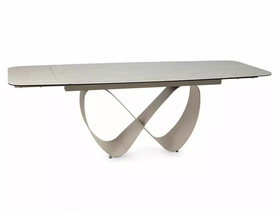 Моделът разполага с удобен механизъм за разгъване, благодарение на който широчината на масата може да достигне до 240см. Това позволява лесно увеличаване на пространството при необходимост, когато се събират повече гости или семейството желае повече комфорт по време на хранене. В прибрано състояние трапезна маса ИНФИНИТИ КЕРАМИК запазва компактни размери и не заема излишно пространство.