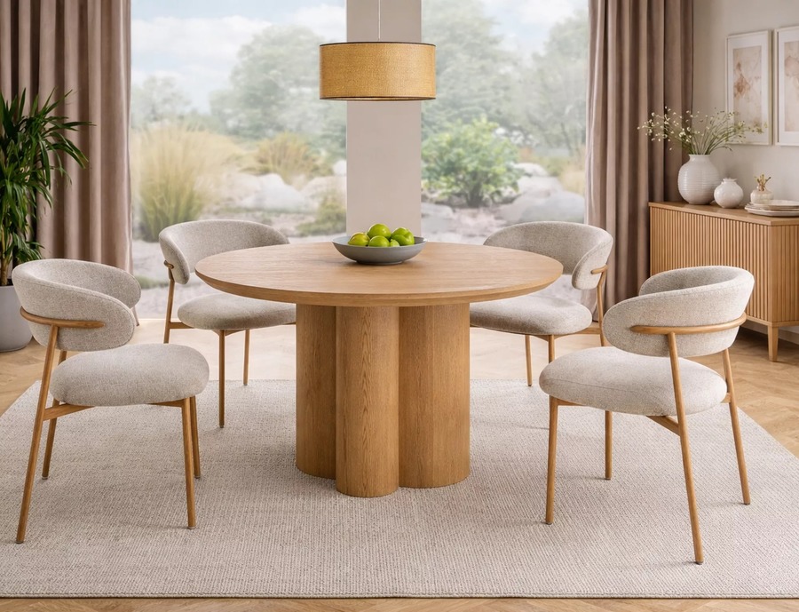 Кръглият плот с диаметър 120 см създава удобство и комфорт по време на хранене. Формата позволява равномерно разпределение на местата около масата и създава приятна атмосфера за семейни събирания и разговори с близки и приятели. Кръглата форма допринася и за по уютна визия на помещението, като омекотява пространството и създава хармония в интериора.