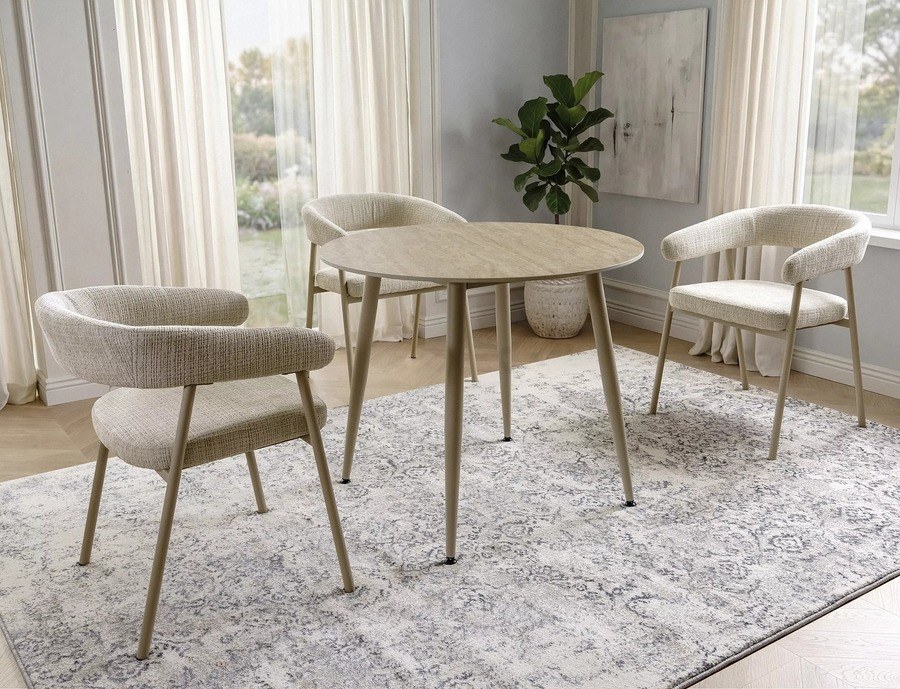 С размери диаметър 90 и височина 76, трапезна маса Рион предлага комфортно пространство за хранене и общуване. Кръглата форма създава уютна атмосфера и улеснява разположението в различни по големина помещения, като същевременно позволява лесно комбиниране с разнообразни модели трапезни столове.