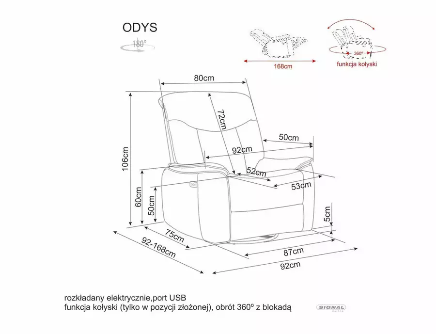 Електрическият разтегателен фотьойл ОДИС разполага с функция за люлеене, която може да се използва дори в сгънато положение, осигурявайки допълнителен комфорт и релаксация.