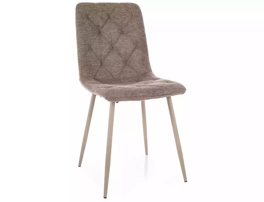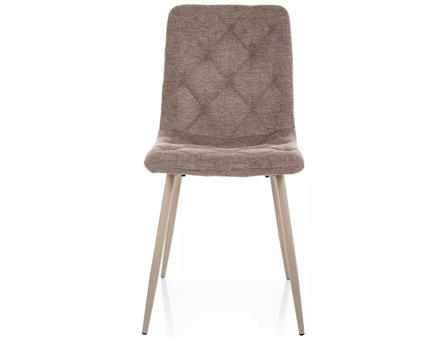 Трапезен стол ДЖЕРИ съчетава модерен дизайн, комфорт и издръжливост. Седалката от пяна, тапицирана с висококачествен текстил, предлага удобство и стил. Ромбоидните шевове добавят елегантност, а кашмирените метални крака със защитни тапички осигуряват стабилност и предпазват пода от надраскване. С максимално натоварване от 120 кг, този стол е отличен избор за трапезарии, всекидневни и други съвременни интериори.