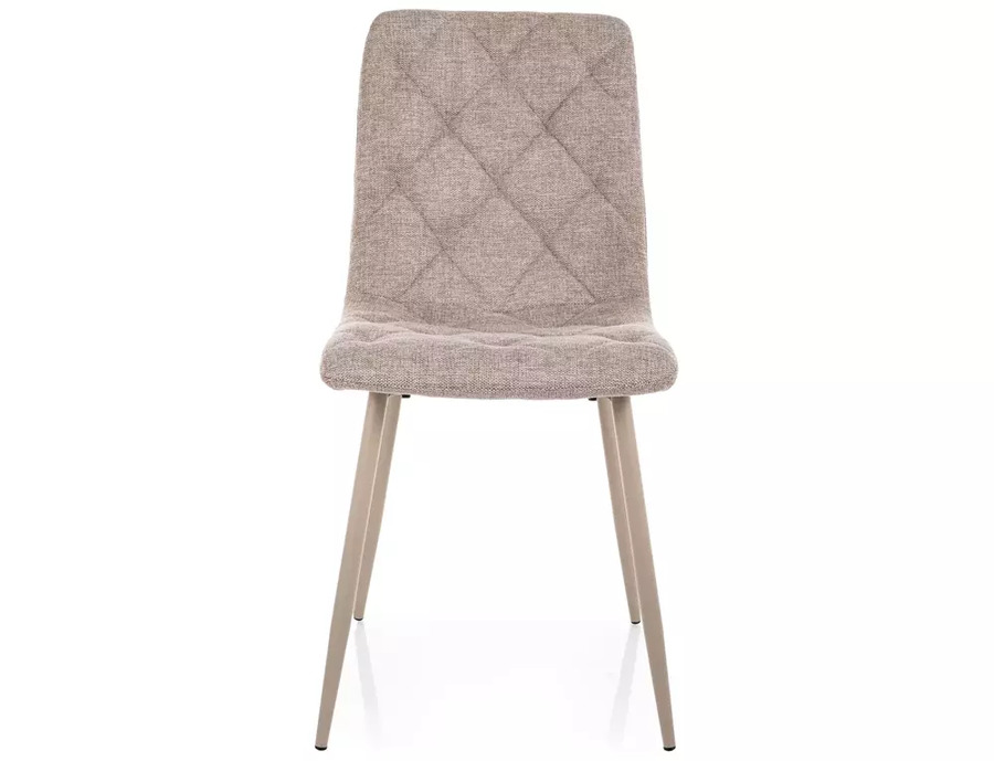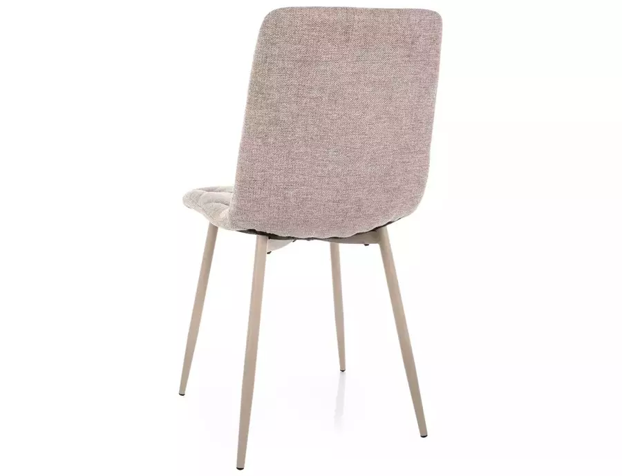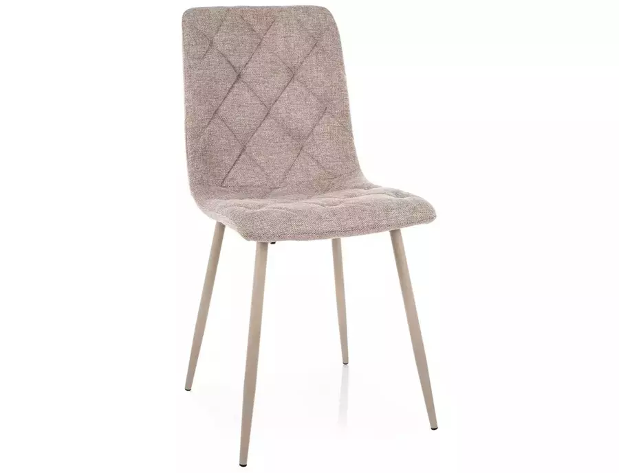 Трапезен стол ДЖЕРИ съчетава модерен дизайн, комфорт и издръжливост. Седалката от пяна, тапицирана с висококачествен текстил, предлага удобство и стил. Ромбоидните шевове добавят елегантност, а кашмирените метални крака със защитни тапички осигуряват стабилност и предпазват пода от надраскване. С максимално натоварване от 120 кг, този стол е отличен избор за трапезарии, всекидневни и други съвременни интериори.