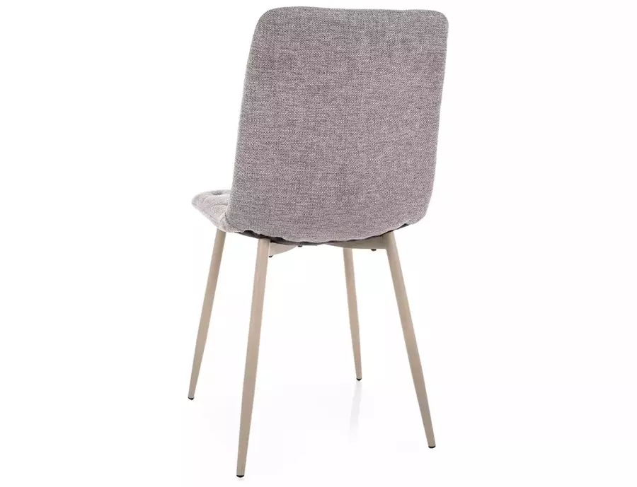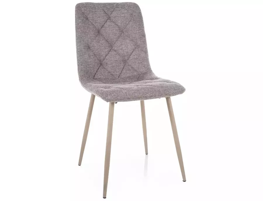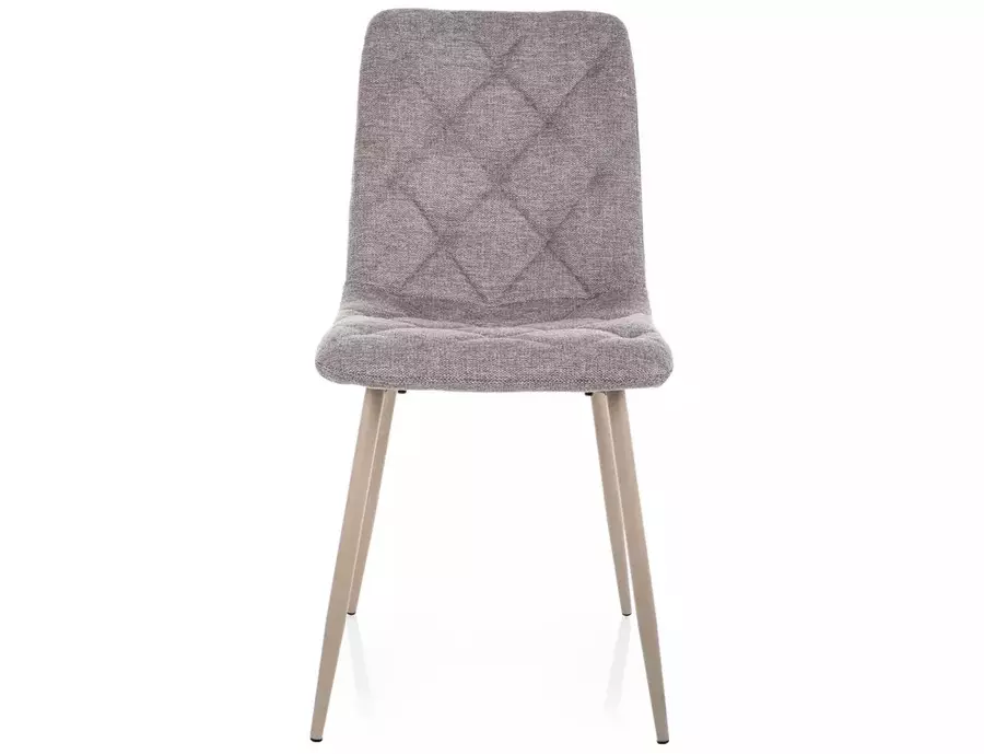 Трапезен стол ДЖЕРИ съчетава модерен дизайн, комфорт и издръжливост. Седалката от пяна, тапицирана с висококачествен текстил, предлага удобство и стил. Ромбоидните шевове добавят елегантност, а кашмирените метални крака със защитни тапички осигуряват стабилност и предпазват пода от надраскване. С максимално натоварване от 120 кг, този стол е отличен избор за трапезарии, всекидневни и други съвременни интериори.