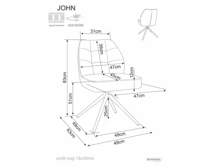 Седалката, оборудвана с джобни пружини, осигурява стабилна опора и меко усещане, което не губи свойствата си с течение на времето. Благодарение на механизма за автоматично връщане и завъртането на 180 градуса, столът автоматично се връща в първоначалното си положение. Продуктът няма възможност за корекция, изработва се във вида, в който е показан на снимката.