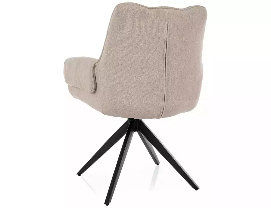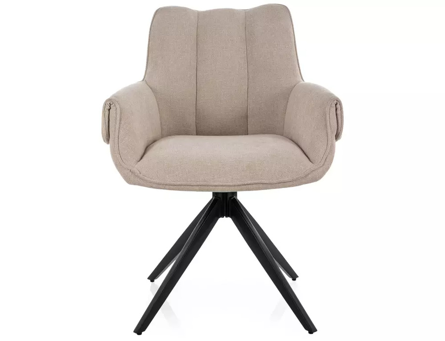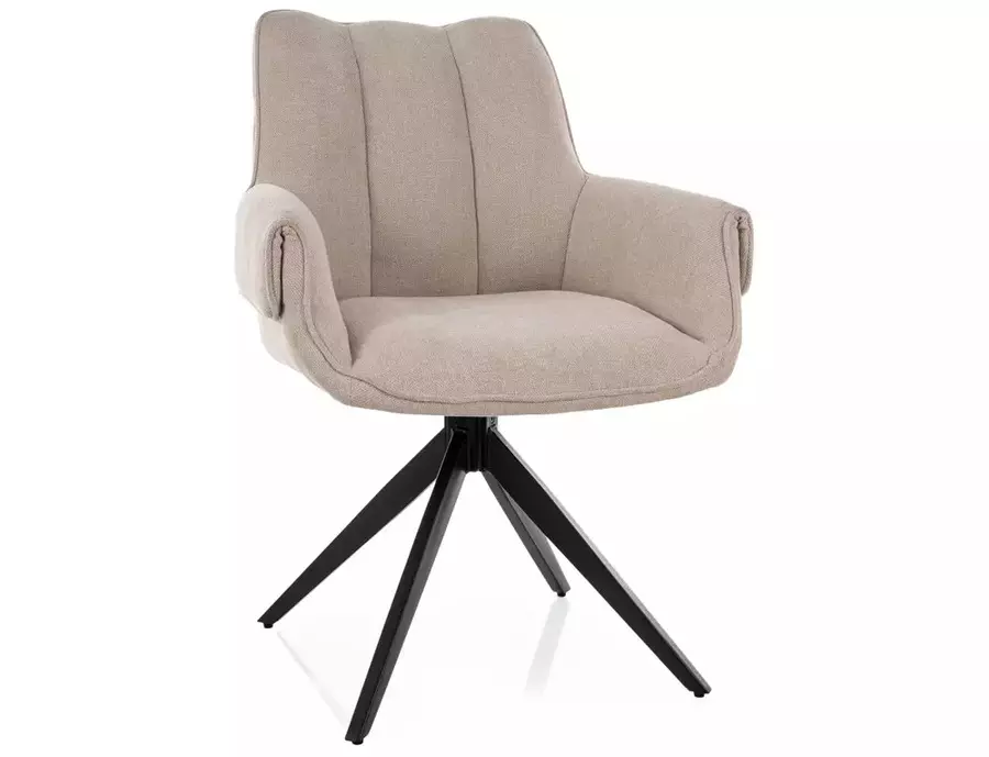 Кресло ДЖИО е елегантно и функционално решение за всяка всекидневна или трапезария. С тапицирана седалка и механизъм за въртене на 180 градуса, креслото автоматично се връща в изходна позиция след завъртане, благодарение на специалния механизъм. Изработено е върху здрава метална основа с черно матово покритие, което осигурява стабилност и дълготрайност. Това кресло съчетава стилен дизайн и висока издръжливост, като е подходящо за модерни интериори.