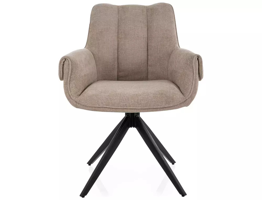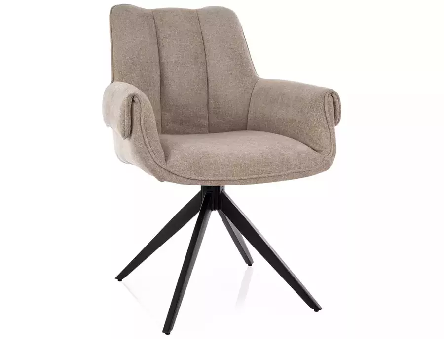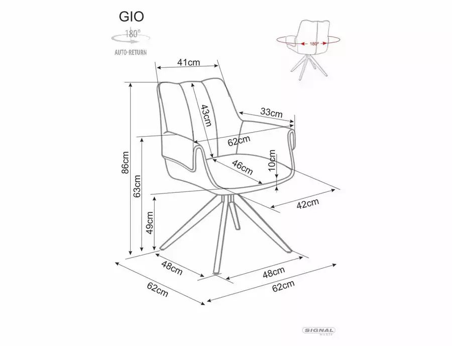 Кресло ДЖИО е елегантно и функционално решение за всяка всекидневна или трапезария. С тапицирана седалка и механизъм за въртене на 180 градуса, креслото автоматично се връща в изходна позиция след завъртане, благодарение на специалния механизъм. Изработено е върху здрава метална основа с черно матово покритие, което осигурява стабилност и дълготрайност. Това кресло съчетава стилен дизайн и висока издръжливост, като е подходящо за модерни интериори.