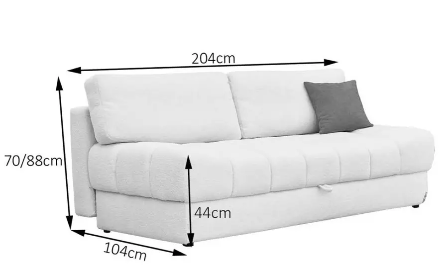 Диван АВОЛА с ракла и функция сън. Размер на площта за спане:147x204 см. Височина на седалката:44 см. Размер на облегалните възглавници: 102x43 см.