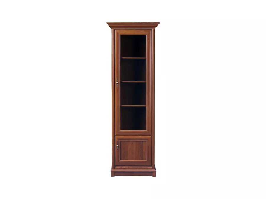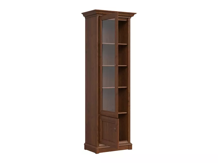 Витрина Кент е стилно и практично решение за всеки дом, което съчетава изискан дизайн и удобство за съхранение. Тя разполага с една стъклена врата, която предоставя отлична възможност за излагане на декоративни предмети, книги или красиви сервизи. В долната част е разположена малка вратичка, осигуряваща допълнително пространство за съхранение на вещи, които искате да бъдат прибрани и защитени от прах.