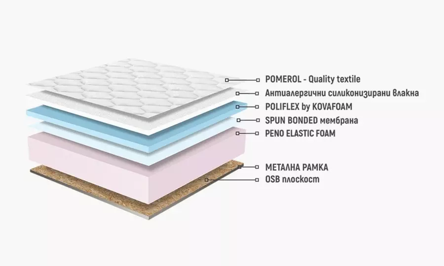 Изолация на движенията: Високоеластичната пяна и Poliflex пяната осигуряват добра изолация на движенията, което означава, че движенията на един човек няма да нарушават съня на друг. Това е особено полезно, ако спите с партньор.
