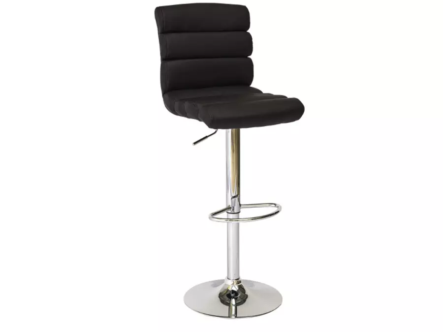 Столът разполага с метална основа, осигуряваща стабилност, и вграден газов механизъм за регулиране на височината според предпочитанията на ползвателя. Хромираният кръгъл подножник допринася за допълнителен комфорт и стилен завършек на цялостната визия.