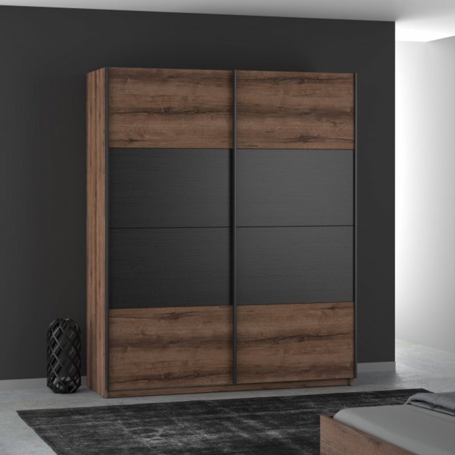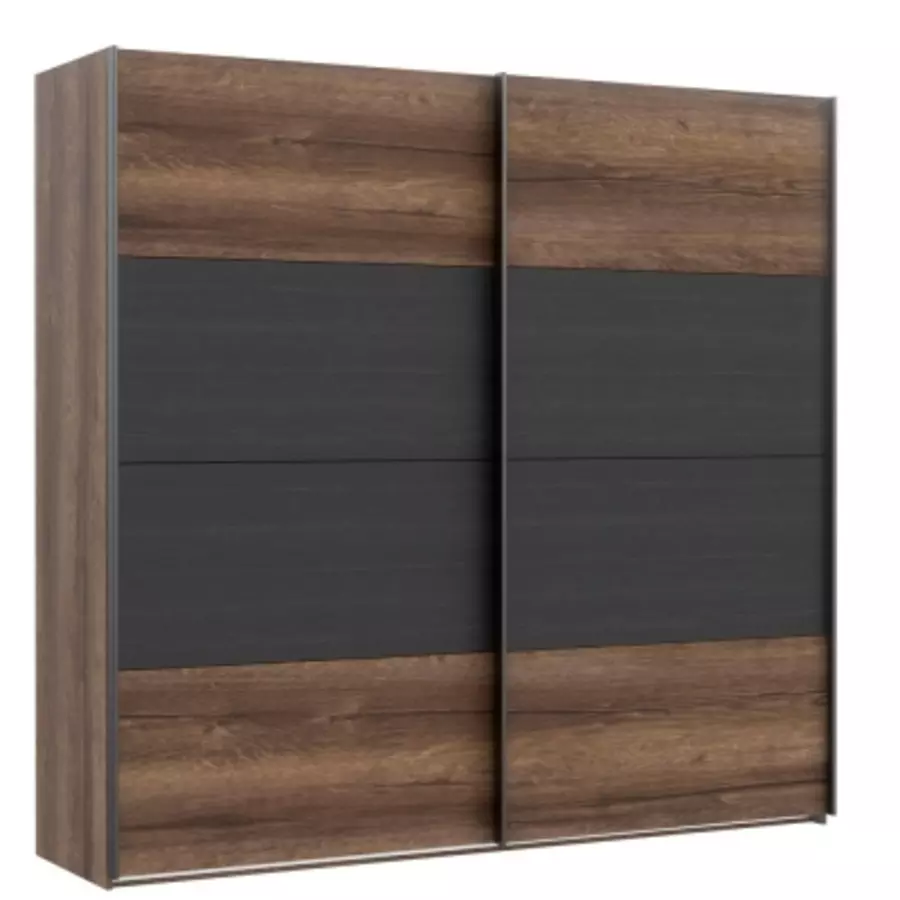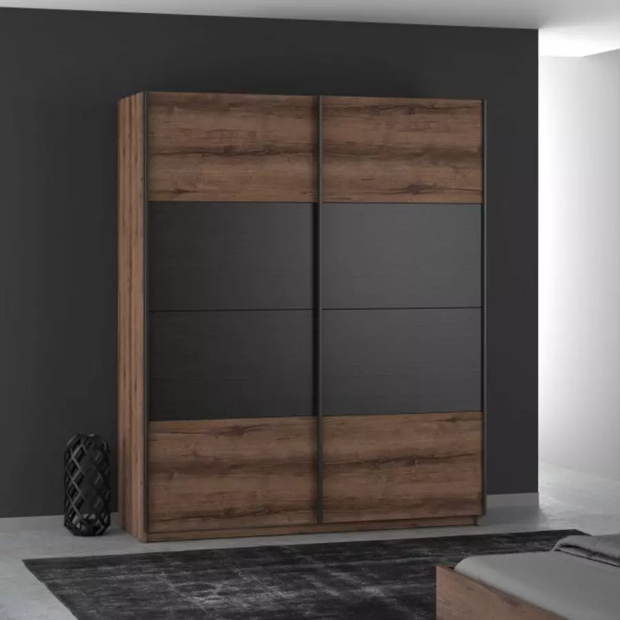 Гардероб с плъзгащи врати Дриймер е стилно и практично решение за вашето спално помещение. Изработен е от 18мм. ПДЧ, което осигурява стабилност и издръжливост за дългогодишна употреба. Вратите са с надежден и здрав механизъм за плъзгане, който гарантира безпроблемно отваряне и затваряне.