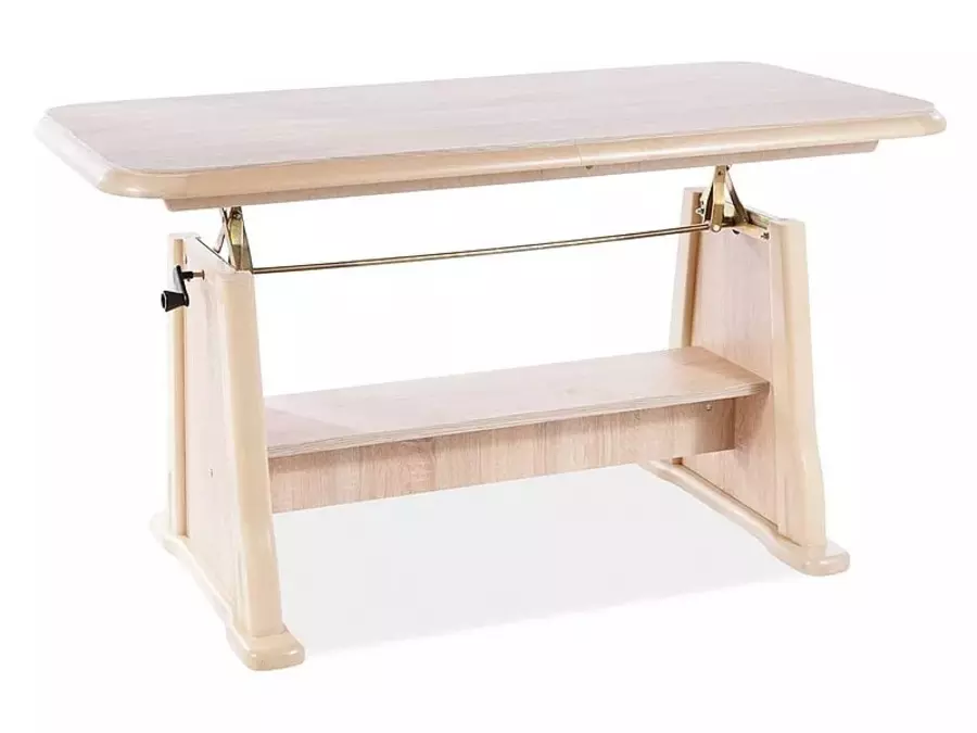Холната маса БЕАТА е идеалното съчетание на функционалност и стил, което ще отговори на всички нужди на вашето дневно помещение. Тя разполага с повдигащ механизъм чрез манивела, който ви позволява лесно да регулирате височината на масата и да я настроите на желаното от вас ниво. Максималната височина е 77 см, което я прави удобна за различни приложения, от работа с лаптоп до комфортно хранене на ниска маса.