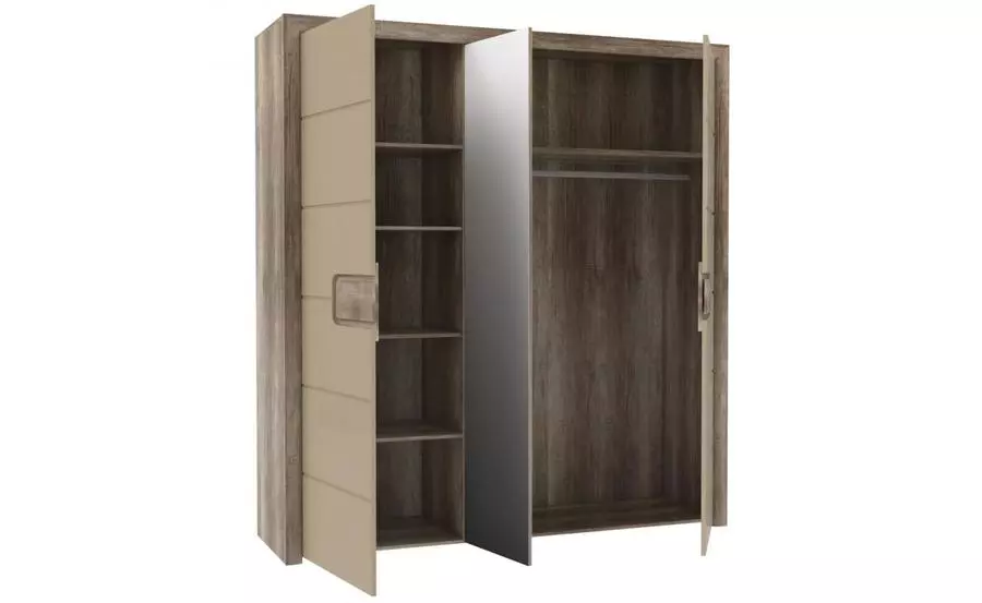 Трикрилен гардероб с огледало ТИЦИАНО – предлага голямо пространство за съхранение на дрехи, с широчина 203,4 см и височина 218,9 см. Вграденото огледало придава допълнителен елегантен завършек на гардероба.