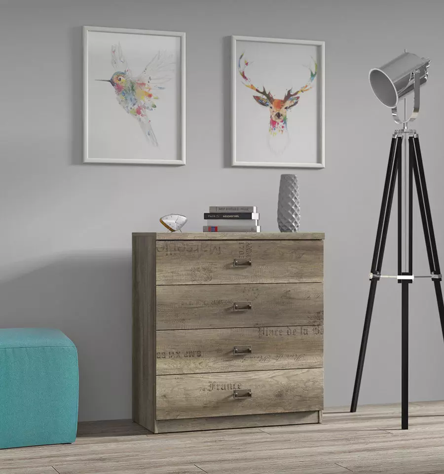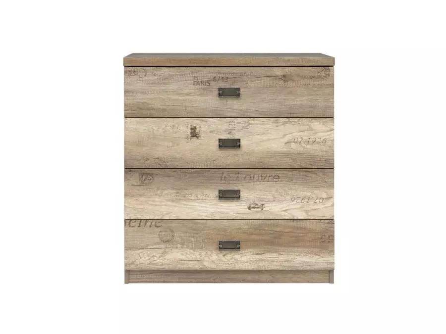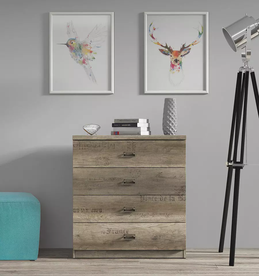 Скрин Малкълм е стилно и функционално решение за всяко помещение, създадено с мисъл за удобство и практичност. Изработен от качествени материали, той предлага четири просторни чекмеджета, които предоставят достатъчно място за съхранение на дрехи, аксесоари или други лични вещи. Принтовете по повърхността на скрина придават уникален и свеж вид, което го прави перфектен избор за юношеска стая или модерен интериор.