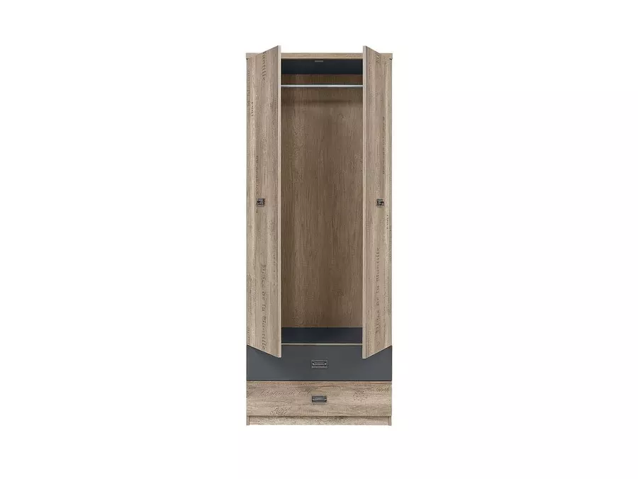 Двукрилен гардероб МАЛКЪЛМ SZF2D2S е практичен и стилен избор за всяка спалня или дрешник. Изработен от здраво ПДЧ с високо качество, този гардероб предлага стабилност и дълготрайност. Състои се от два широко отварящи се врати, които разкриват просторна вътрешност, разделена с рафтове и два чекмеджета, което позволява удобно съхранение на дрехи и аксесоари.